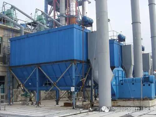 布袋除塵器結構組成由 :除塵器出灰斗、進排風道、過濾室(中、下箱體)、清潔室、濾袋及(袋籠骨)、手動進風閥,氣動蝶閥、脈沖清灰機構等。