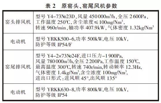 原窯頭、窯尾排風(fēng)機(jī)參數(shù)見表2。