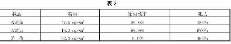 (2)運行阻力比純布袋除塵器低500Pa,但比電除塵器阻力高900Pa。